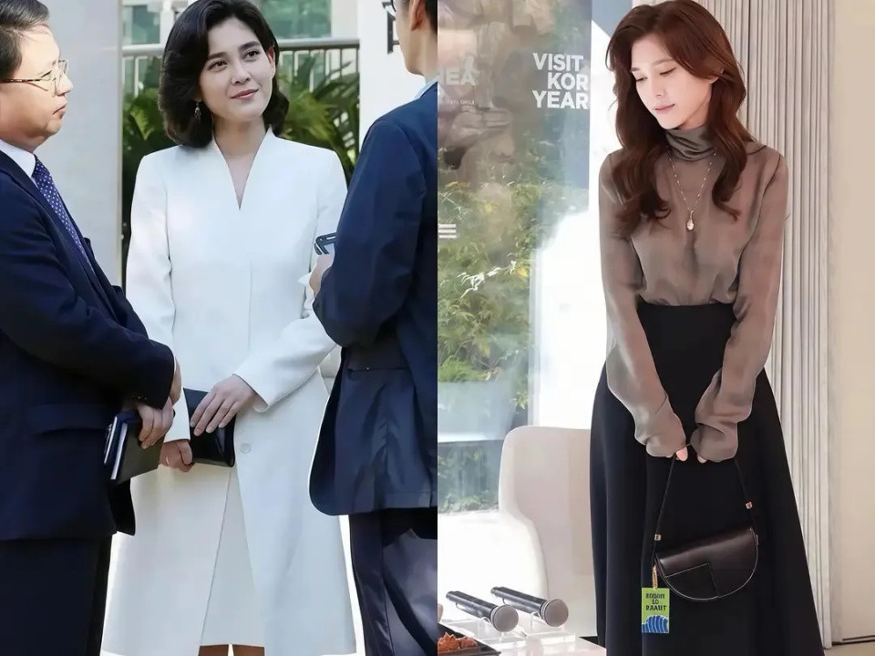 李富真是三星的长公主,她的气质和穿搭一直很在线,选择的裙子版型可以衬托出她优雅动人的身材线条。