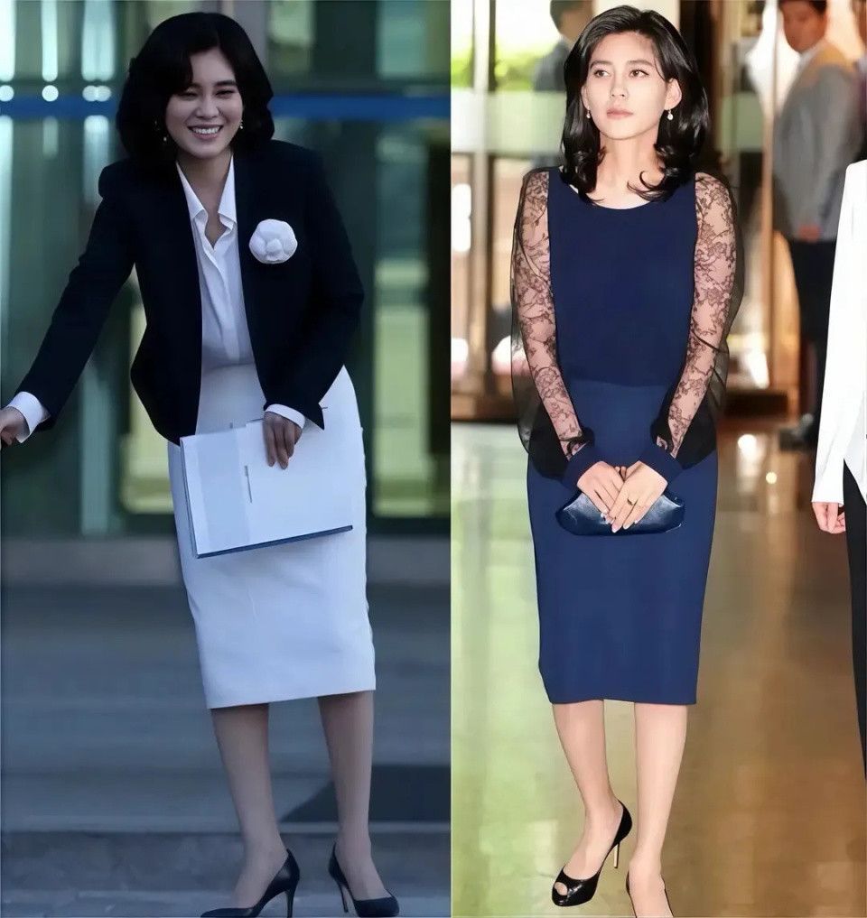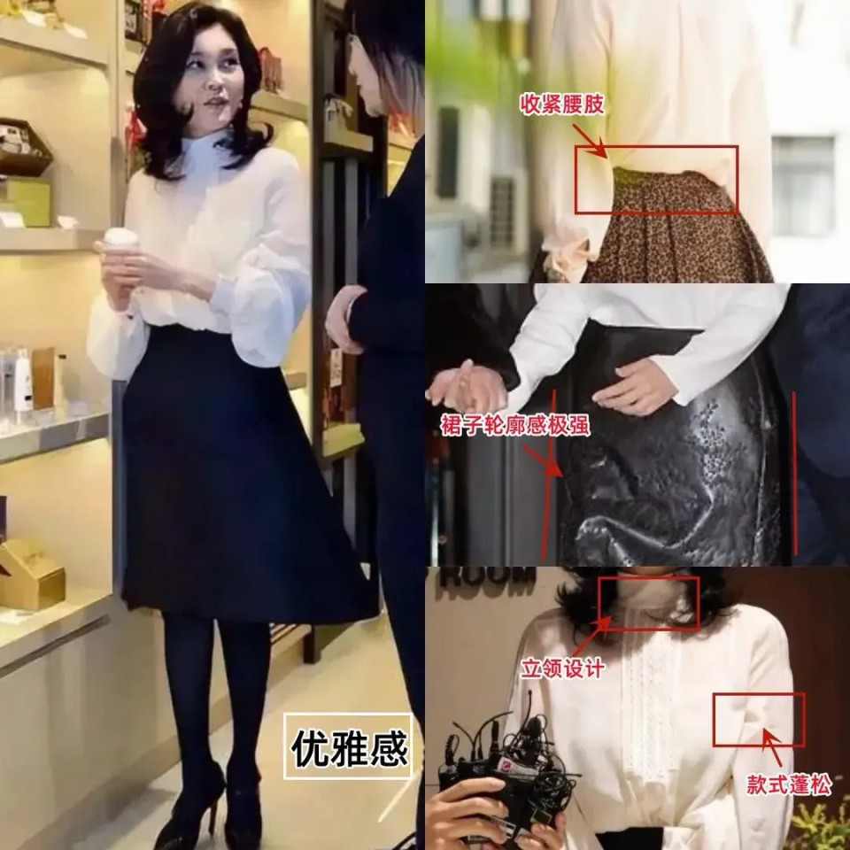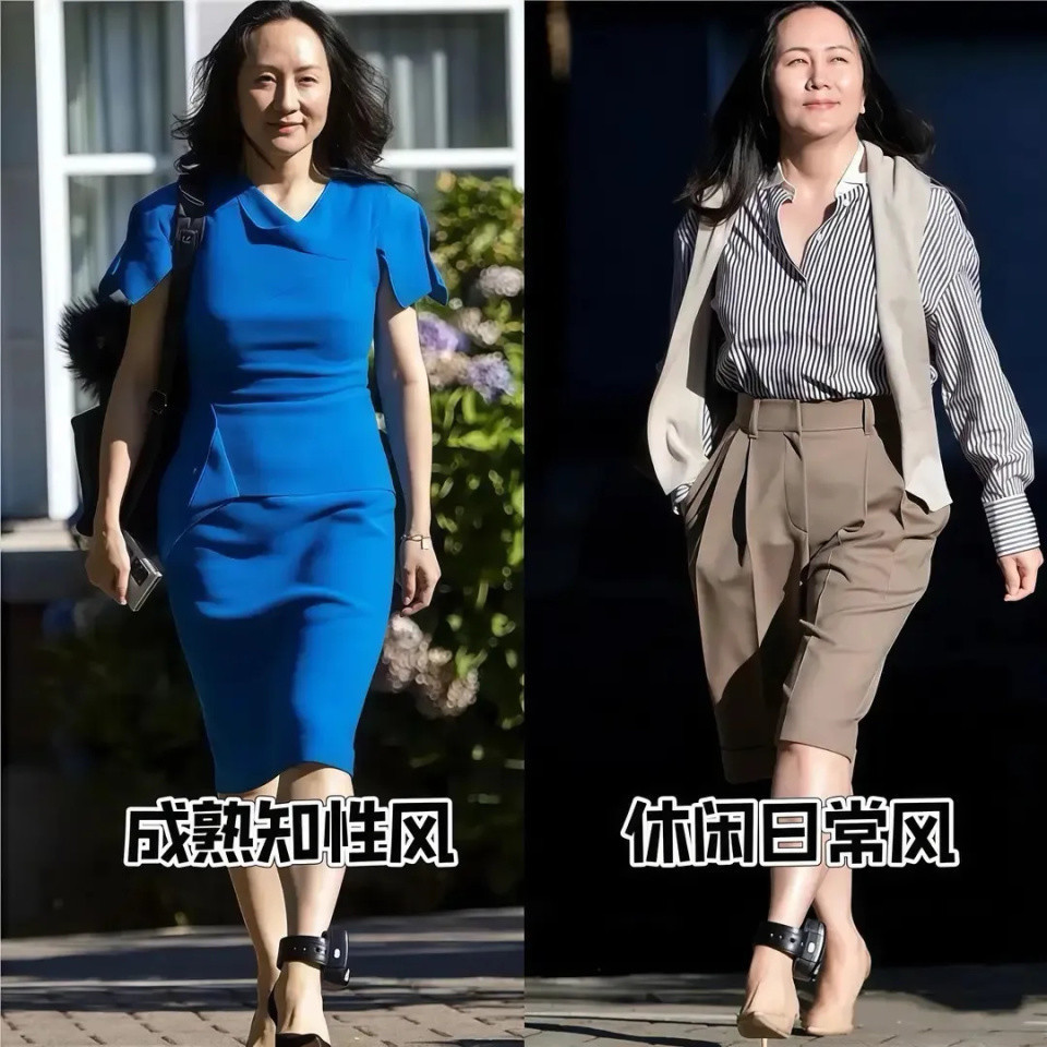 真正见过世面的女人,穿裤子永远不紧身,衣服不花哨,裙子不选短款。孟晚舟与李富真用了齐膝长裙完美诠释优雅,高腰剪裁拉长身形,直线版型修饰曲线,开叉设计打破沉闷,拒绝短裙显胖,丝袜俗气光腿配尖头高跟鞋显高级。
